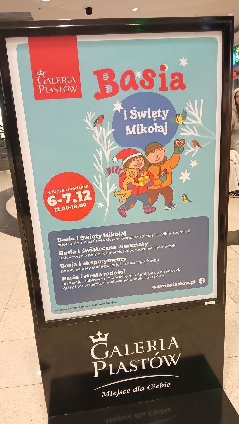 plastyczne dla dzieci w Galerii Piastów w Legnicy. Motywem przewodnim wydarzenia jest Bohaterka książek i filmu „Basia”, a specjalnym gościem będzie Święty Mikołaj.